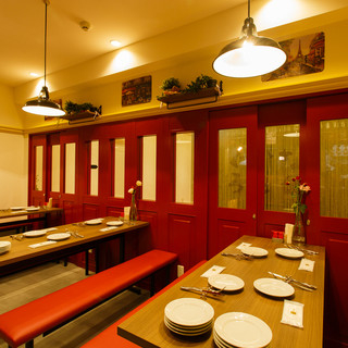 赤と白を基調とした『Bistro en cocotte』には、カウンター席とテーブル席が用意されています。おひとり様やデートにはカウンター席、家族や友人との集まりならテーブル席はいかがでしょうか?