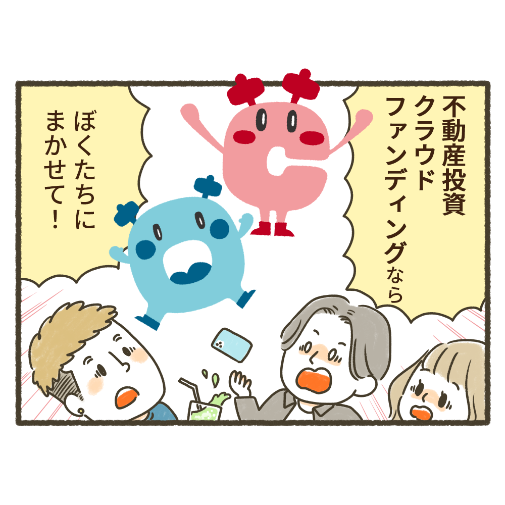 マンガでわかる!不動産クラウドファンディングについてCOZUCHIオリジナルマスコットキャラクターが解説しています。