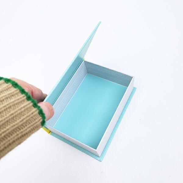 実はパカっと開けることができ、中に小物が入れられるブック型の収納ボックスとなっております。隠したい小物をこの中にいれて収納し、愛らしいおしゃれな本としてインテリアになるので見せる収納を楽しむことができそうです。サイズ:15.5cm×11.2cm×4.8cm 素材:紙 マグネット