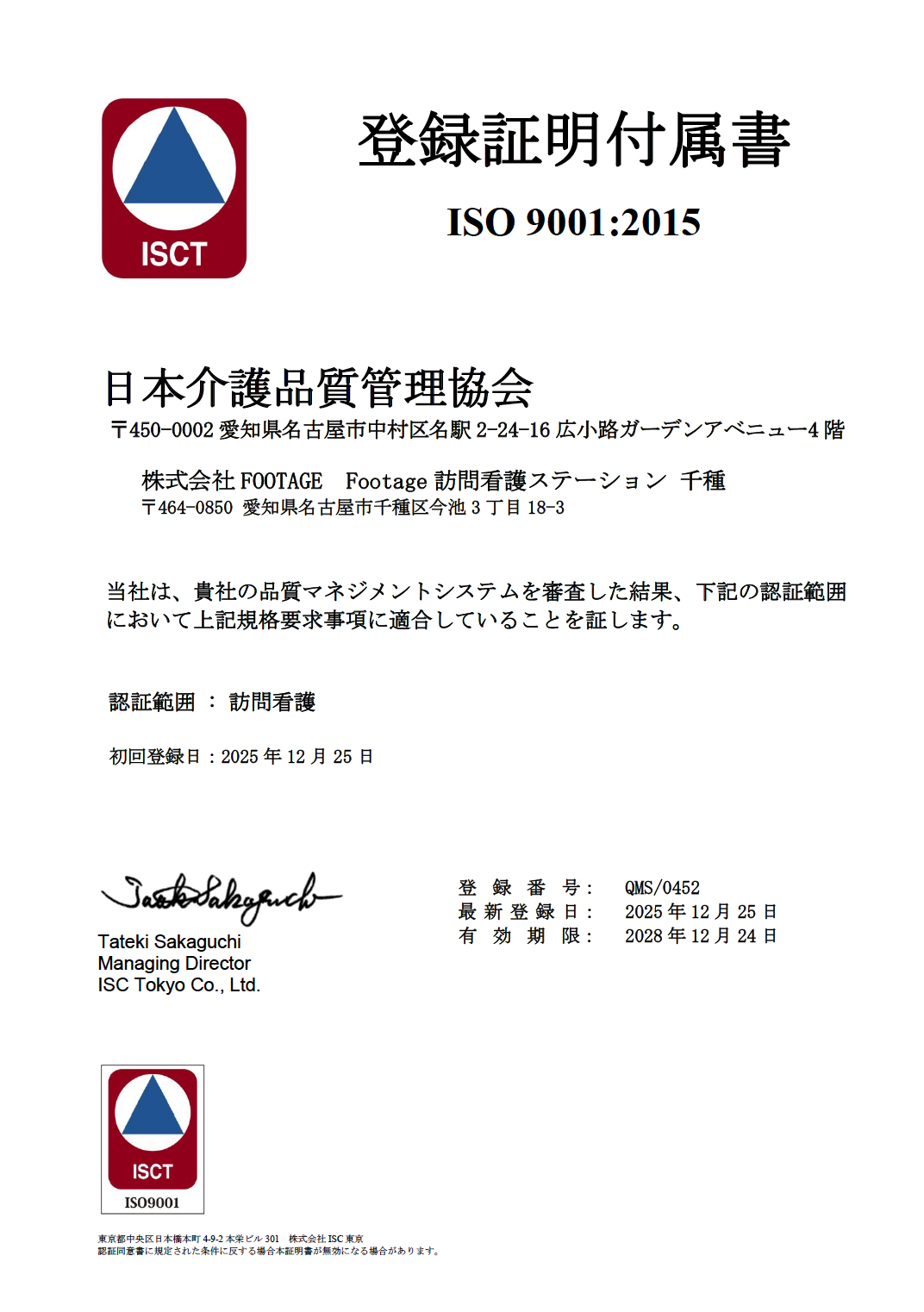 (1) 国内初「訪問看護×ISO9001団体認証」