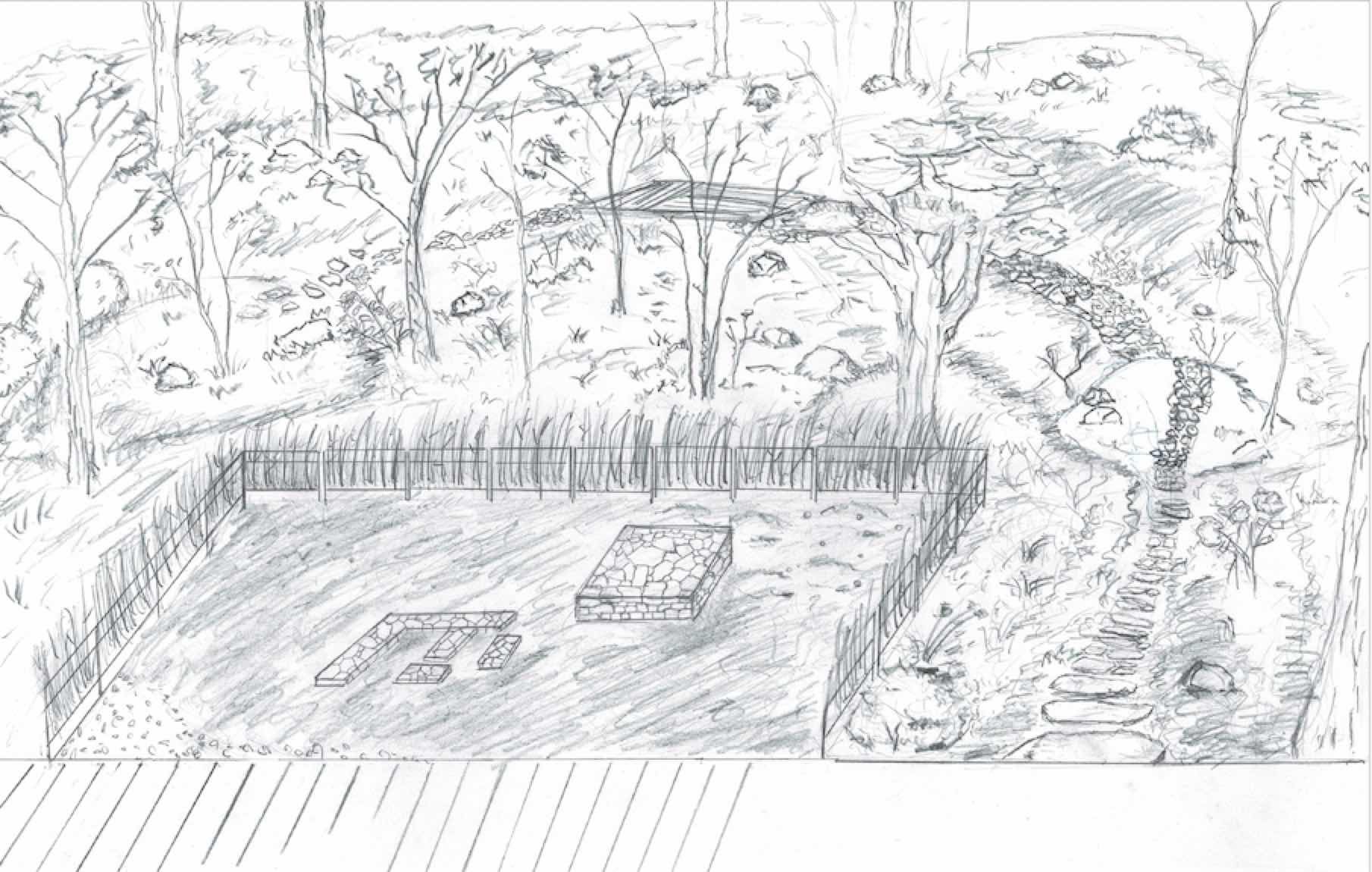 「まえ」のスペースは苔の海に浮かぶ石積みで造られた隠岐の島を職人の手によって造形、隠岐への旅の期待感を表現しています。「うしろ」のスペースは隠岐に群生する石楠花やカタクリなどの植物を散りばめ、庭を散策することで実際の隠岐の島も散策したいと思ってもらえるような空間にしていきます。