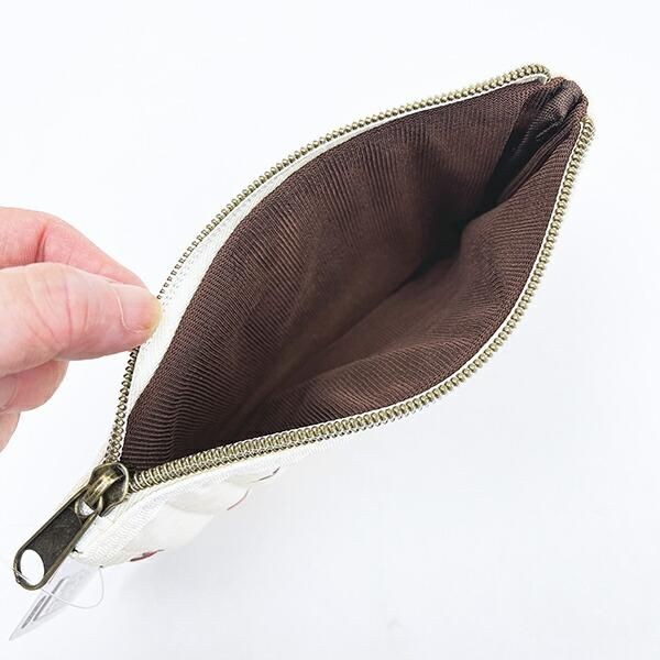 すんだ色味になっており。こちらも大人女子にピッタリなデザインです。クッション性がある、キルティング生地でコスメいれの小物入れとしてもおすすめです。意外と大き目でたくさんのものを収納できそうです。サイズ:13.5cm×17.55cm×1cm