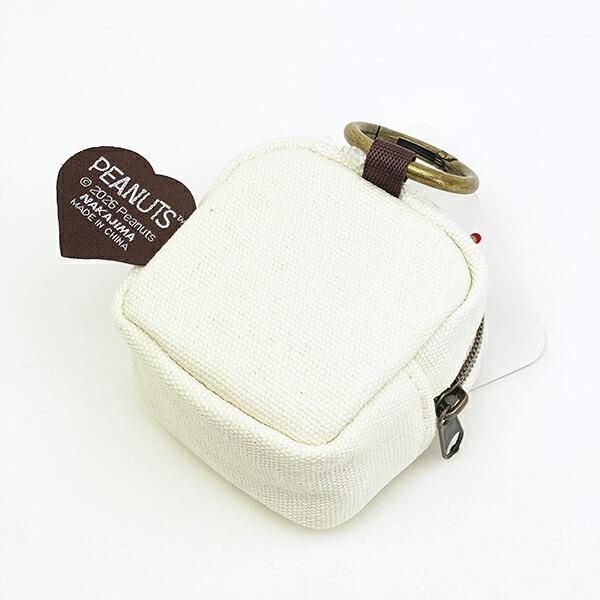 ブラウン色のスヌーピーがシンプルで大人かわいい印象です。カラビナ付きなので、バッグやリュックに付けて、リップやイヤホンなどの小物入れとしてお使いいただけます。ポーチとしてだけではなく、かばんにつけると、愛らしいアクセントにもなりそうです。サイズ:7cm×7cm×4cm 素材:ポリエステル