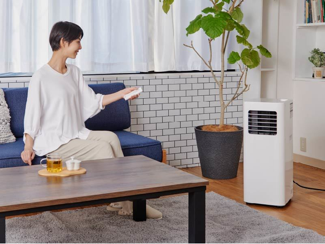工事不要で人の居るところだけを効率よく涼しくする 床置き型エアコン「どこでもエアコン スリム」4月下旬発売