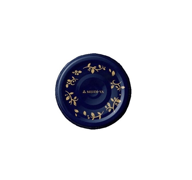 上質感を感じられる紺色に、果実の草木をモチーフにしたデザインを配置し、中央には「MEIDI-YA」ロゴを入れています。