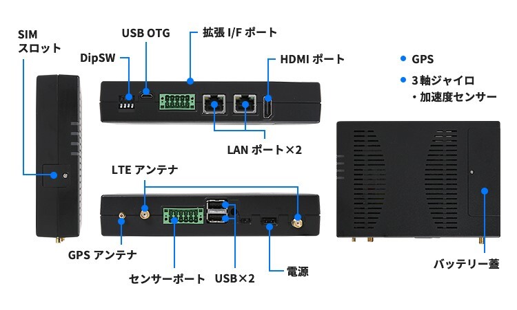 多彩なインターフェースと車載性能を備えた、「Linux搭載のエッジコンピュータ」となります。当製品の主な特長は、以下となります。