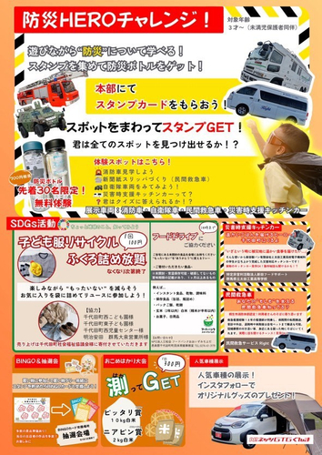 内容: 指定スポットを巡ってクイズに答えたり体験をして、スタンプを集めて《防災HEROになろう!》