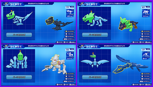 「ビルド」では、実際の玩具菓子と同様に、様々なパーツを使って組み立てたり、組みかえることで、プレイヤーが思い描く、強くてカッコいいほねほねザウルスを好きなだけ作ることができます。