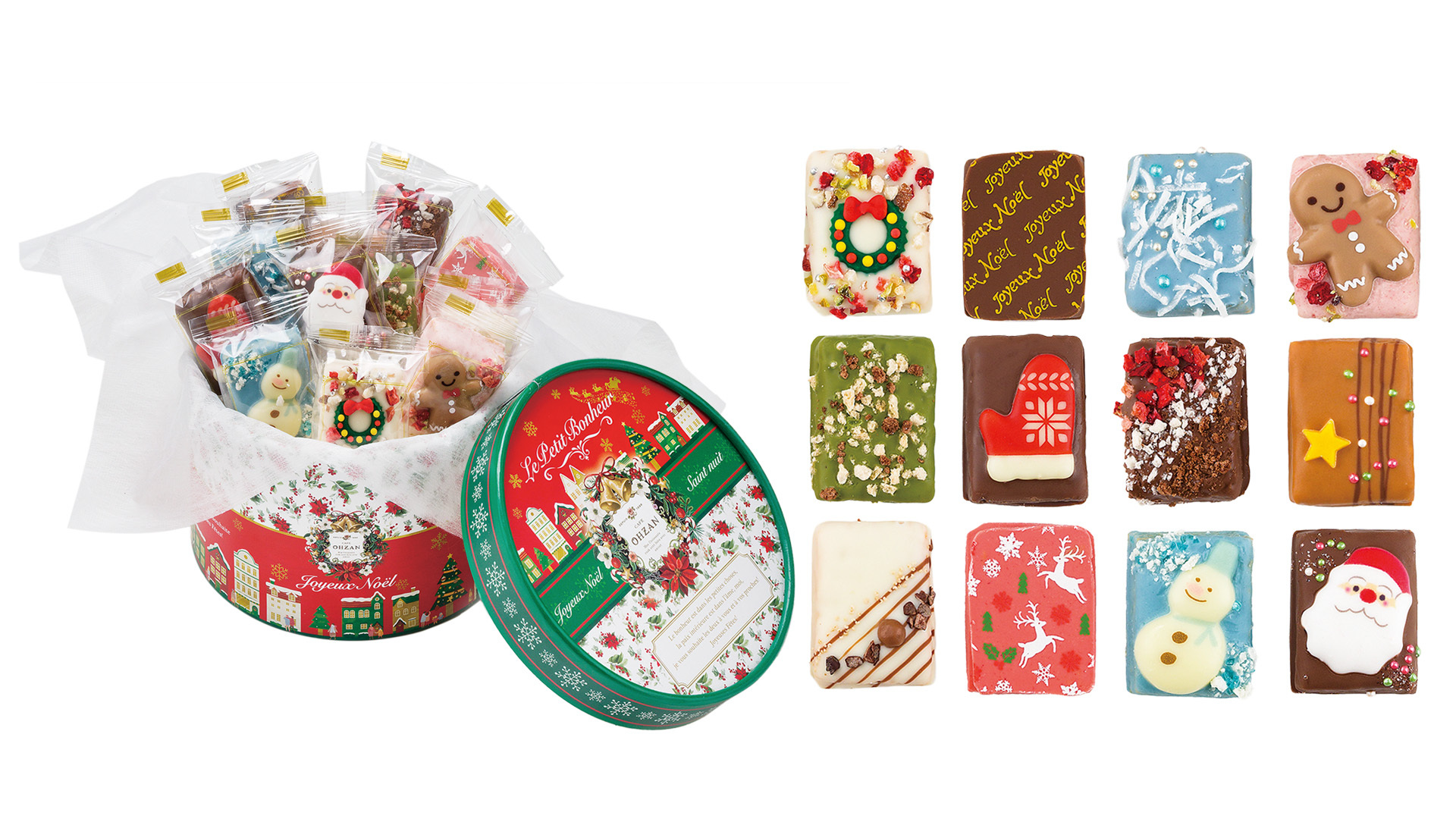 中身のラスクにも、サンタや雪だるま、リースなどの可愛らしいモチーフが盛りだくさん。1箱にクリスマスらしさがぎゅっと詰まっています。