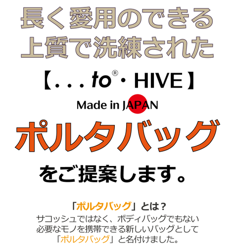 「上質な素材&仕立て」「心地良さ」「スマートスタイル」の自社ブランド【...to(R)】で財布などの革製品を販売している株式会社スタジオYクリエイション(所在地:東京都台東区、代表:吉川 信和)は、ポルタバッグ【HIVE(ハイヴ)】の先行予約販売をMakuakeにて2023年4月12日よりスタートいたしました。
