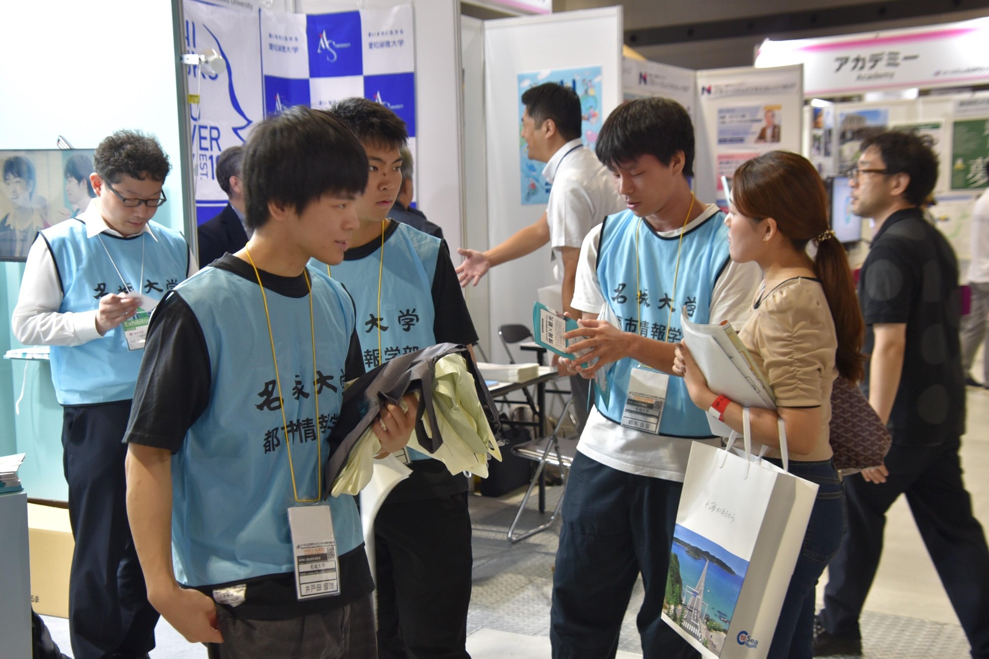 「県内外の企業や自治体、名城大卒業生などなどからたくさん声を掛けられ、最終日の夕方には1000部用意したリーフレットや案内冊子をすべて配布しきったほか、200枚以上名刺をお渡しし、『一緒に何かできないか』とのお誘いも複数ありました。都市情報学部はもちろん名城大学にも関心を持っていただけたのでは」と4日間を振り返った森准教授。「学生たちも学部の広報やアンケートの方法に加えて、他の大学の観光系学部・学科がどんなことに取り組んでいるかなどを、楽しみながら学ぶことができたと思います。ぜひ、今後も続けて出展していければ」と話していました。