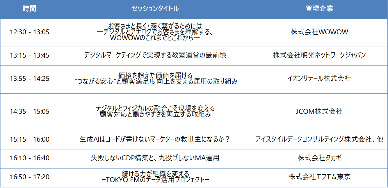 顧客のニーズも多様化している現代ビジネスの各顧客との接点から、データ・テクノロジー活用、顧客理解の手法へ焦点を当て、各業界のリーディングカンパニーがその最前線の取り組みを語るセミナーとなっております。