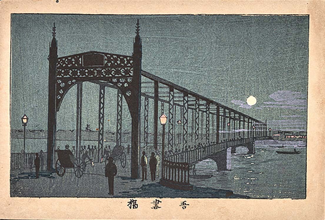 井上安治(1864-1889)が東京の名所を描いた「東京真画名所図解」。本シリーズは、「江戸」から「東京」へと変わりつつある風景を写実的に描いた作品として人気を博した。