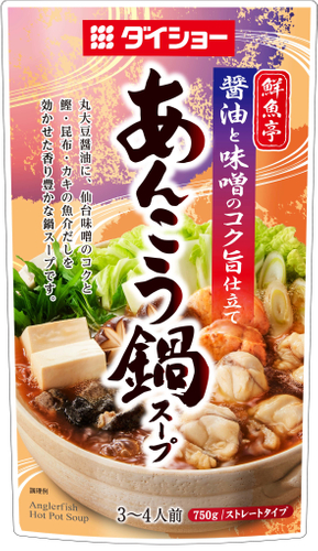 株式会社ダイショー(本社:東京都墨田区、取締役社長COO:阿部 孝博)は、2022年秋冬の新製品として『鮮魚亭 あんこう鍋スープ』を2022年8月1日(月)より全国で発売します。