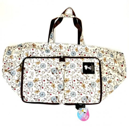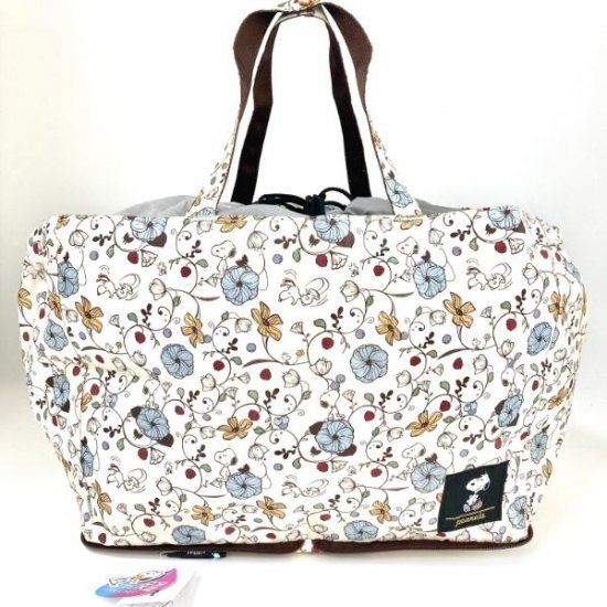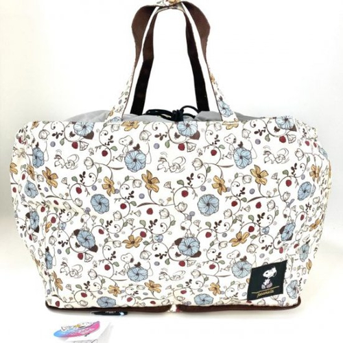 キレイなお花のデザインが目をひく、スヌーピーのレジカゴバッグです。このデザイン、以前にもエコバッグでご紹介したのですが、本当にオシャレですよ♪
