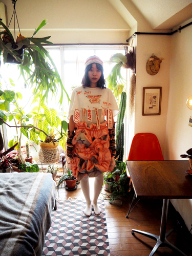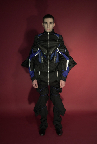 様々な世界への憤りや反骨心を着用する服という作品で表現。過ぎ去る流行や大量消費システムに向けてのアンチテーゼを掲げ、一つの作品に向き合い全て手縫いで制作。