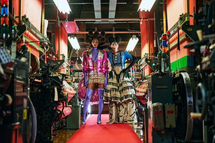 富士吉田市の老舗織物会社「光織物」の工場内に敷かれたレッドカーペットに、富士吉田市の地場産業の端材を用いたアップサイクリング作品が登場。連綿と受け継がれてきた富士吉田の織物文化が、これからの日本を担うデザイナーたちのエネルギーと相まって、この先ますます力強く発展していく様子を表現しています。