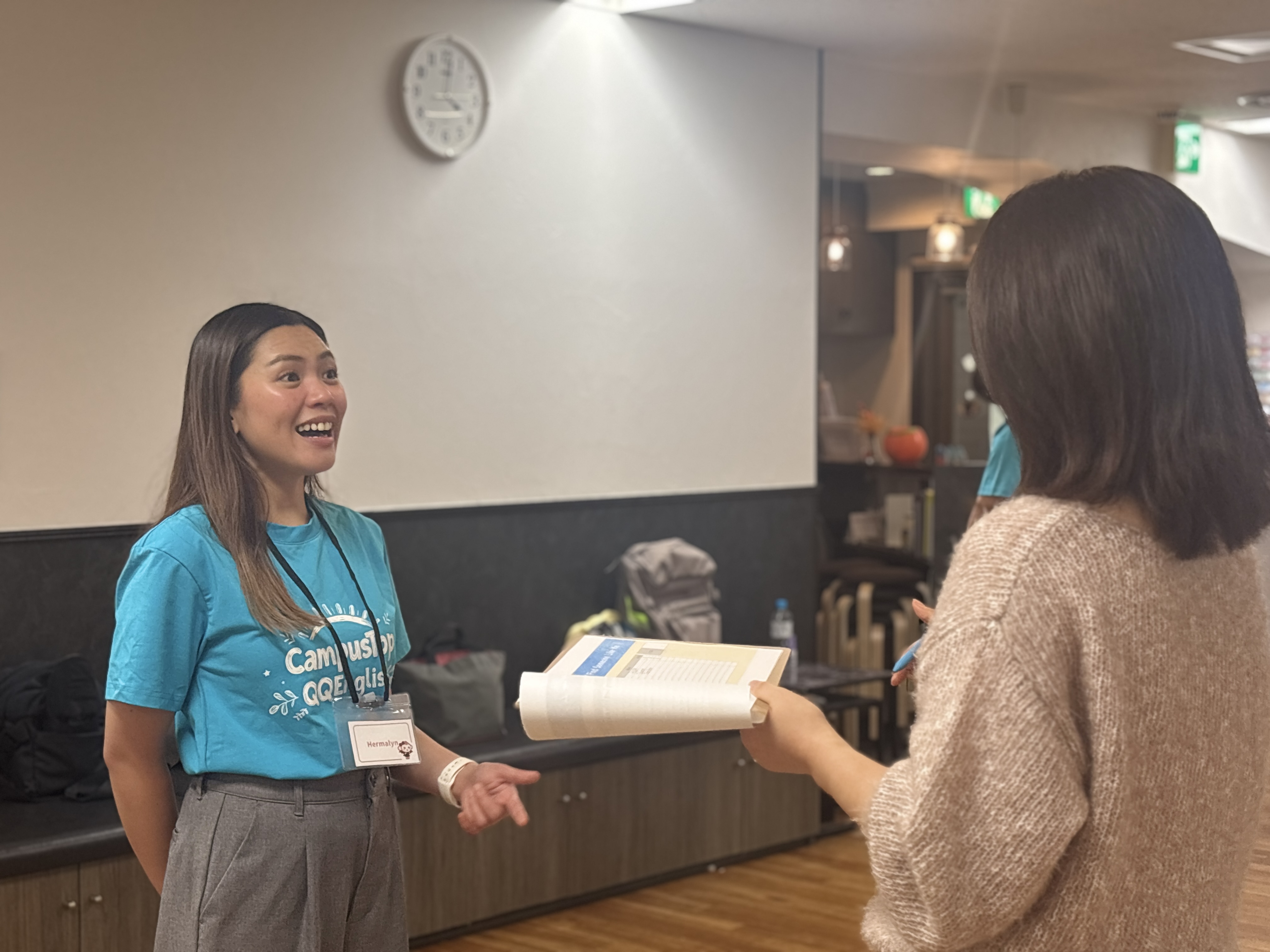 日本人スタッフとフィリピン人教師のバイリンガル進行で行われ、初めて会う参加者同士が英語で自己紹介を交わし、ゲームやトークを通じて自然と笑顔が生まれる時間となりました。
