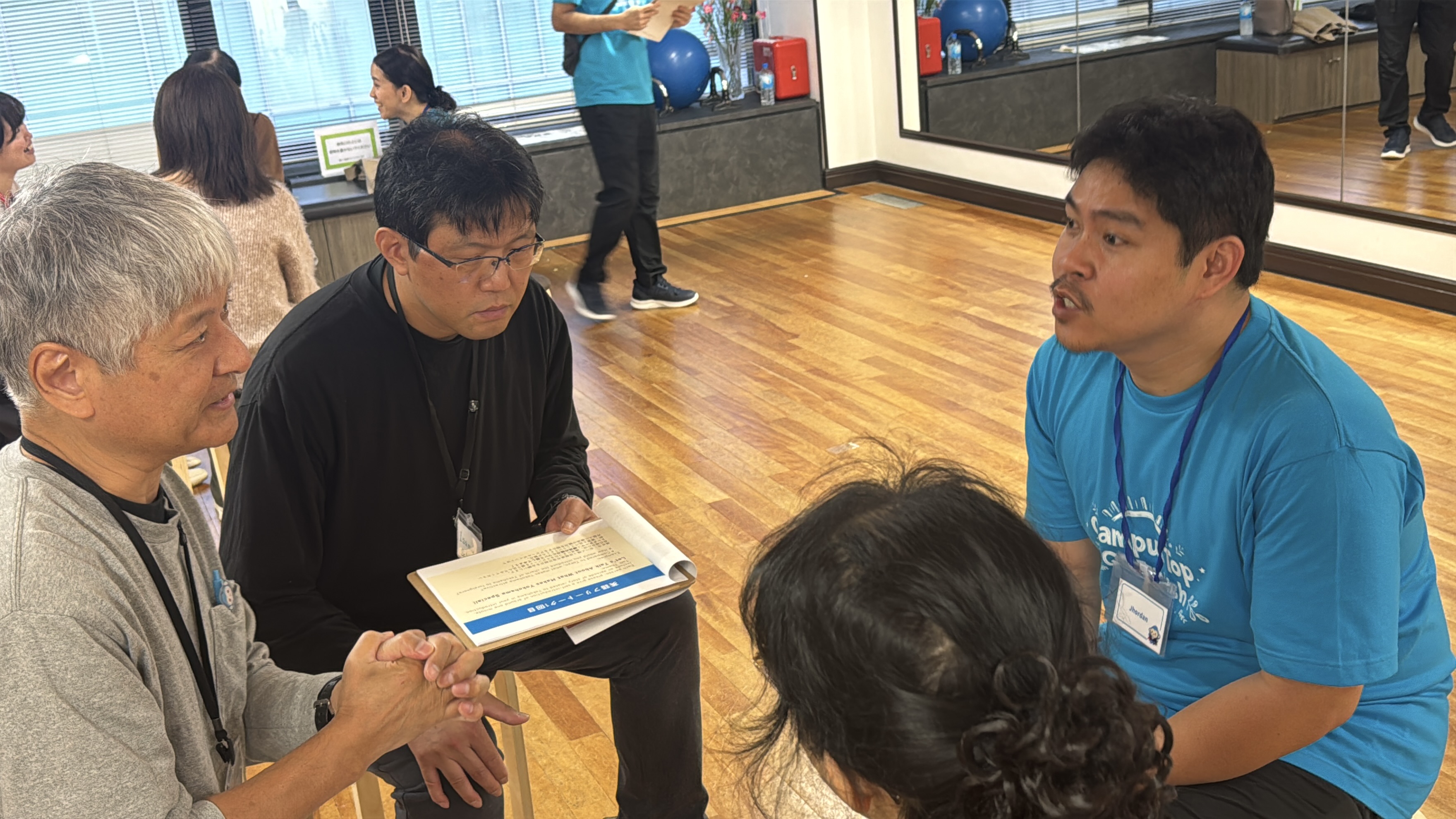 参加者は3人1組となり、そこにフィリピン人教師、または日本のスタッフが加わりテーマトークを実施。