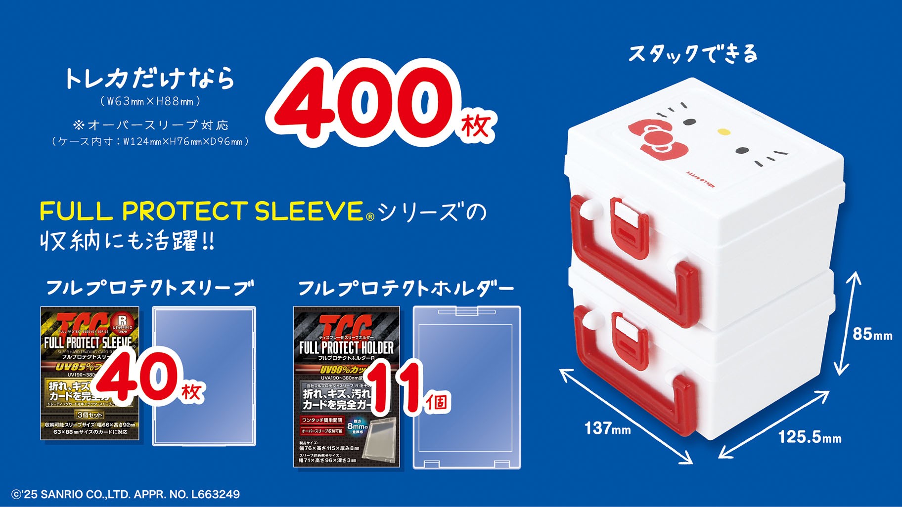 株式会社河島製作所(以下、河島製作所)は、トレカサプライブランド「FULL PROTECT SLEEVE®(フルプロテクトスリーブ)」と株式会社サンリオ(以下、サンリオ)のハローキティがコラボした商品を10/27(水)に発売しました。