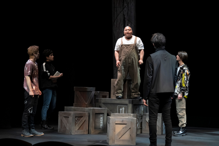 囲み取材で荒井は「年齢層もそうですし、初舞台から大先輩まで(キャリアも)幅広いキャストで稽古してきました。あとは自分たちを信じて、スズカツ(鈴木)さんの演出でできあがったこの世界観を全力でがんばるだけです」、嘉島は「客席に近いところでのお芝居もあるので、お客様の反応も楽しみにがんばりたいです」、駒田は「荒井くんも言ったようにいろんな人たちが集まって、スズカツさんを筆頭にいろんなことを試しながら、苦労しながら、悩みながらやれたと思います。早く幕を開けて、お客様の感じを知りたいです」、ドラムは「初めての舞台で、僕が喋っているところを初めて観る方もいると思います。これからの役者人生をかけて本気で向かっていきたいです」、田中は「一か月間稽古してきたことを信じて、お客様にぶつけるだけです」、飯原は「絶対全公演ミスなしで演じきるので、お客さんは安心して来てください……!」、瀬谷は「アドリブもけっこうあるので、そこも楽しんでいただければ」、翔は「初舞台なので楽しめたら」、大友は「みんなで話し合ってどうしていくか決めることもありました。細かいところまでこだわっているので、そこもぜひお客様に感じ取っていただけたら」と話した。