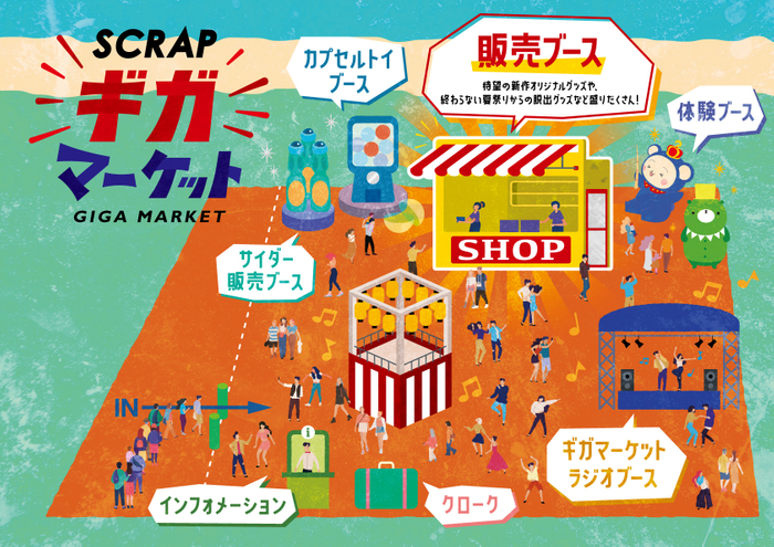 SCRAPギガマーケットは『終わらない夏祭りからの脱出』スタート前までの、入場可能時間限定でお楽しみいただけるエリアです。