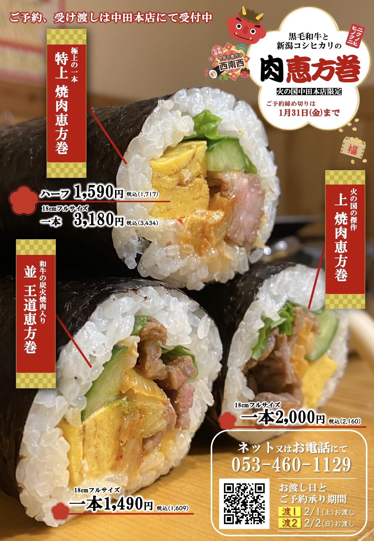 予約限定販売!選べる3種の焼肉恵方巻き