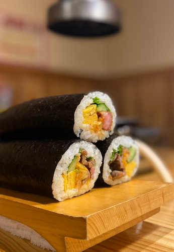 黒毛和牛の柔らかひれ肉を厚切りのまま恵方巻きに。肉肉しさを前面に感じる一品です。