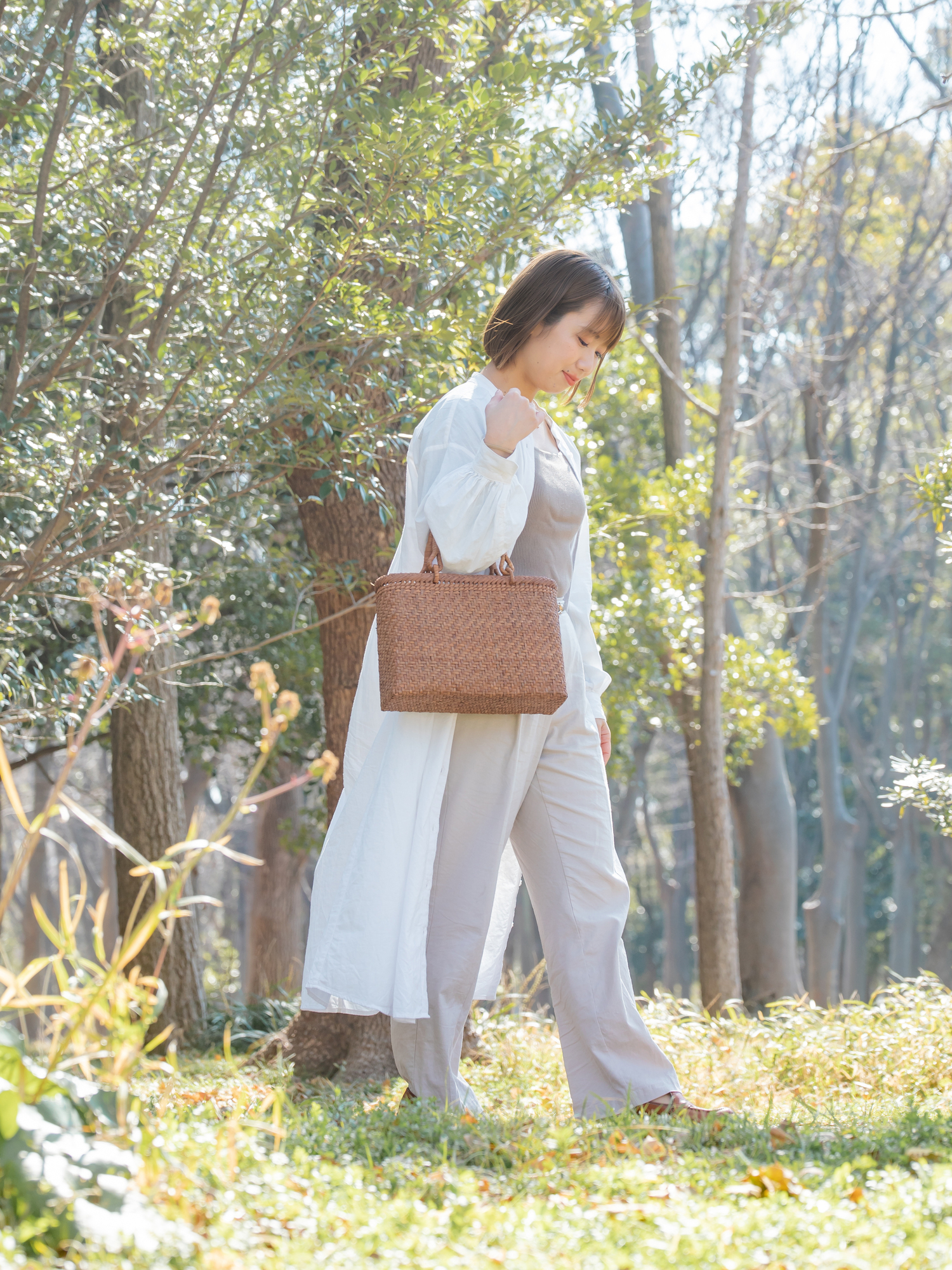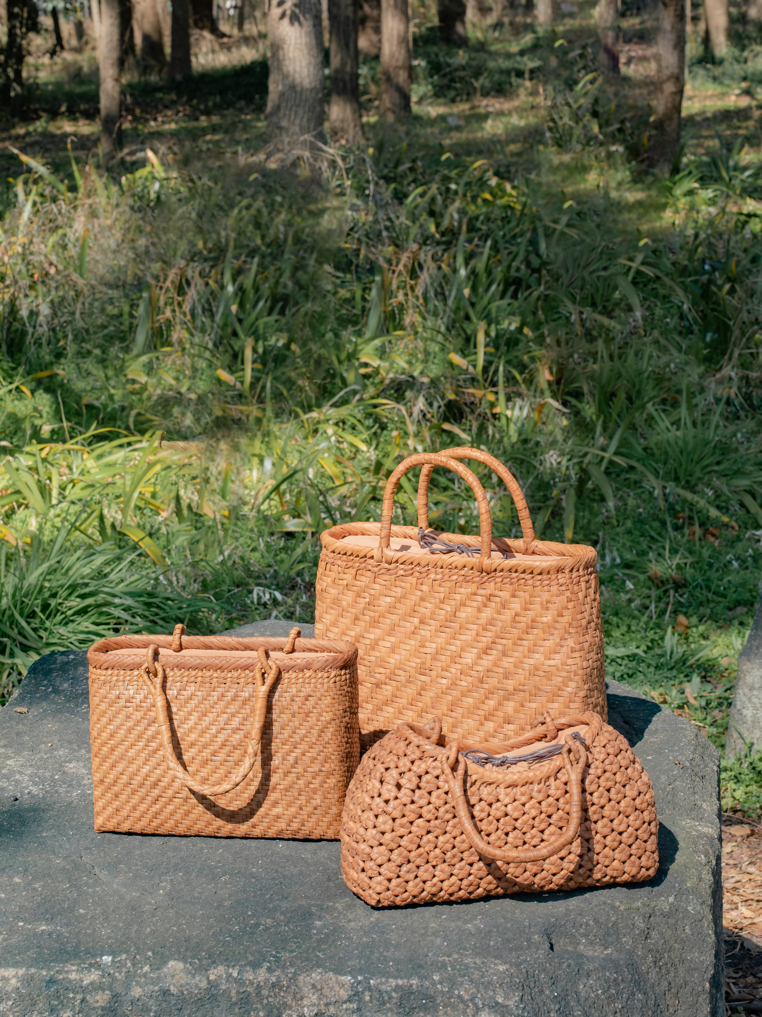 使い込むほどに艶が増し、親子三代で使えると言われる山葡萄のかごバッグ。