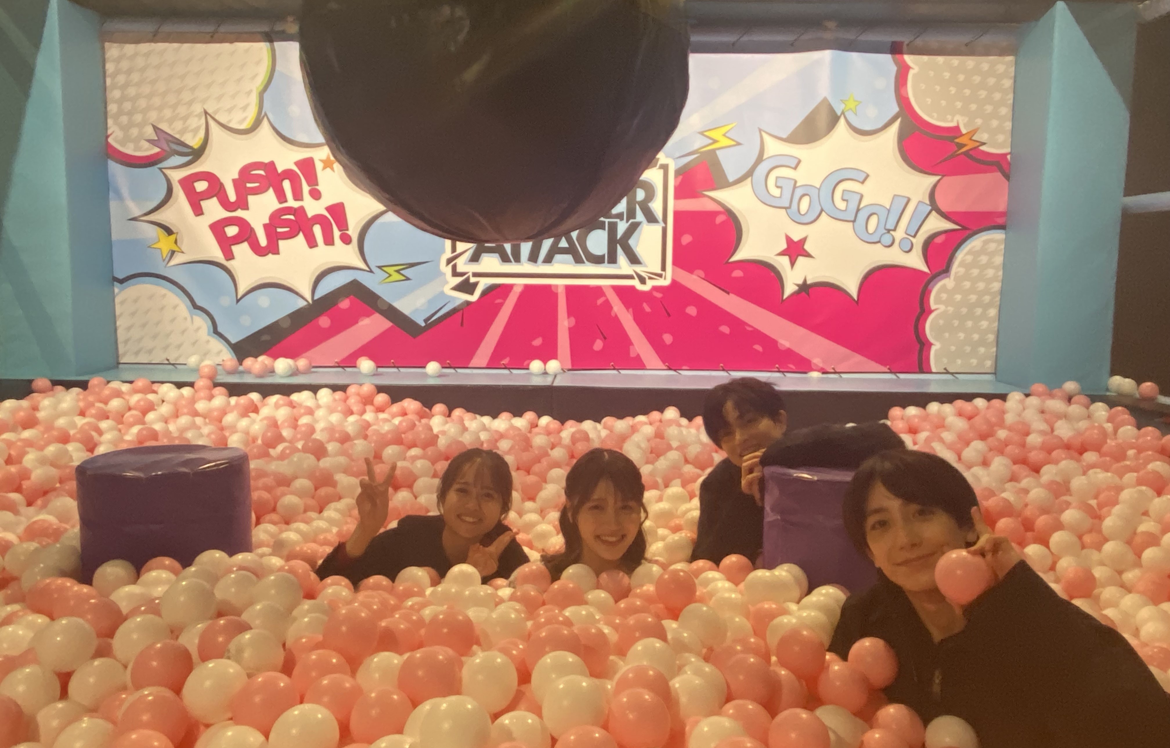 広島の真ん中にある「ひろしまスタジアムパーク」は、ミュージアムやスタジアムツアー、グルメやイベントなど様々な楽しみ方ができる公園です。まずはここ、パーク内のアスレチックで『パシャ活』開始!ピクニックセットを借りたりサッカー対決してみたり!リフティングでは塚本さんがまさかの‥‥ヘディングしていました!笑