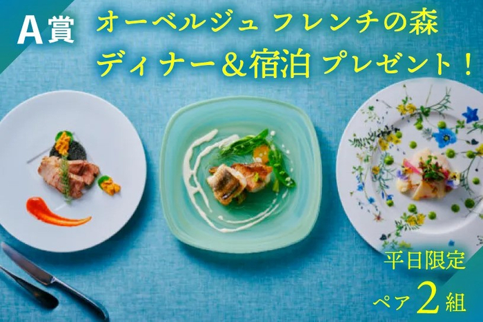 プレゼント内容: A賞/「オーベルジュ フレンチの森」 平日限定のご宿泊プレゼント(ペア2組)