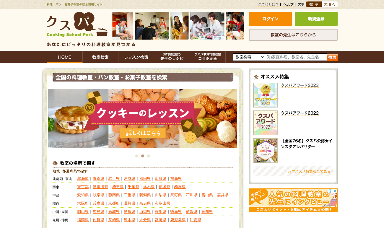 クスパは、全国約2,700教室の情報を掲載する国内最大規模の料理教室・パン教室・お菓子教室の紹介サイト。2004年に「Cooking School Park(クッキングスクールパーク)」としてオープンし、2023年には会員登録数10万人を突破しました。生徒と教室のマッチングのための情報だけでなく、教室オリジナルレシピなどのコンテンツ発信や、企業向けのプロモーションサービス等を提供しています。