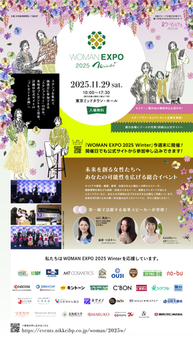 2025年11月29日(土)に東京ミッドタウン・ホール(東京都港区赤坂)にて、働く女性に向けた総合イベント「WOMAN EXPO 2025 Winter」を開催します。