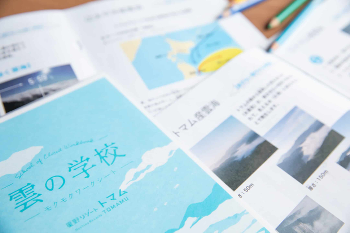 展望施設「雲海テラス」にて、雲の達人から雲海の発生メカニズムを学び、自ら雲を作る実験を行い、翌日の雲海の発生予測に挑戦します。学んだ翌朝には、雲観察グッズを持って、雲の達人と一緒に雲の様子を実際に観察。予測したことと照らし合わせながら学びを深めます。実験や観察で理解したことを「モクモクワークシート」にまとめ、自由研究を完成させることができます。