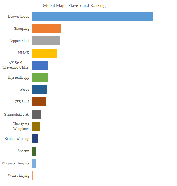 LP Informationのトップ企業研究センターによると、方向性電磁鋼の世界的な主要製造業者には、Baowu Group、Shougang、Nippon Steel、NLMK、AK Steel (Cleveland-Cliffs)、ThyssenKrupp、JFE Steel、Posco、Stalprodukt S.A.、Chongqing Wangbianなどが含まれている。2024年、世界のトップ10企業は売上の観点から約79.0%の市場シェアを持っていた。
