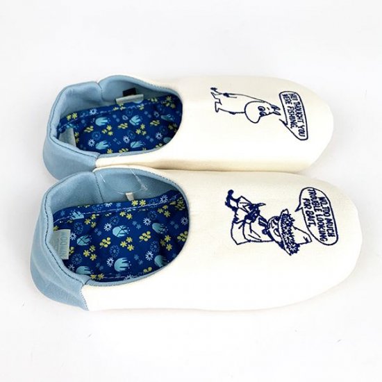 色違いには、ブルーもご用意しています。ムーミンとスナフキンのデザインで、こちらもインソールが取り外しできて洗えます♪かかとの部分は特にソフトな素材なので、素足でも痛くなる心配はありませんよ。