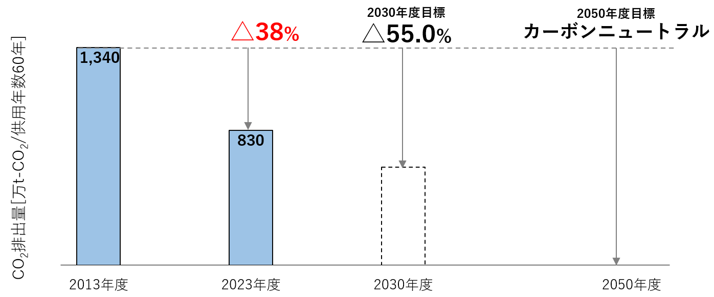 今後も積水ハウスグループ全体が提供する新築住宅等の使用時のCO2排出量(スコープ3カテゴリ11)を2030年において2013年度比55%削減、2050年度のカーボンニュートラルの実現に向けて、着実に取り組みを進めてまいります。