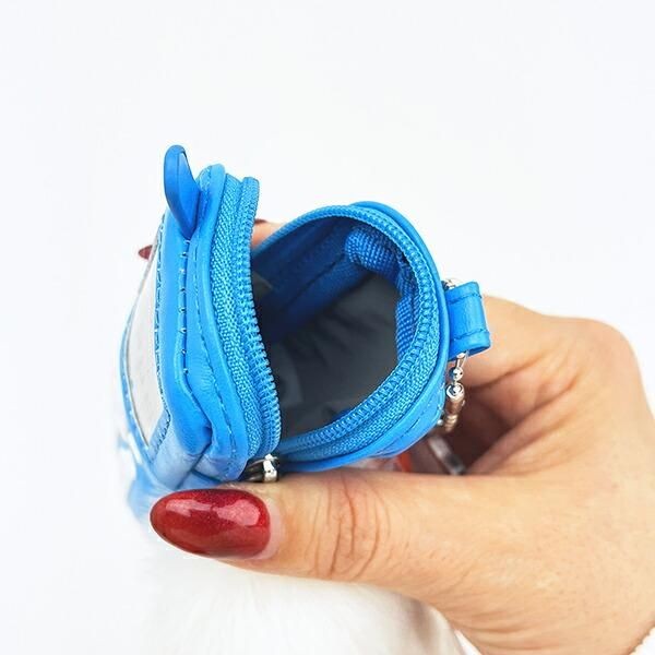 バブルスの水色ポーチには、真っ白いふわふわファーのチャームが付いています。パッと明るい印象になってかわいい。