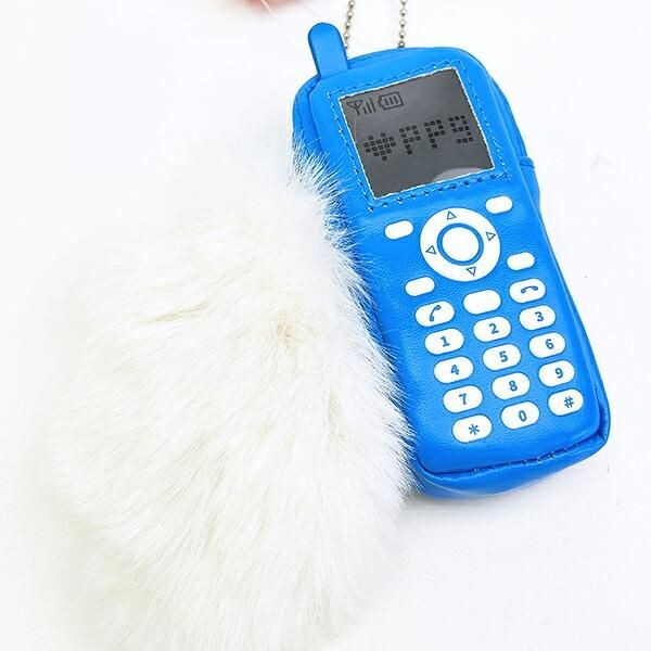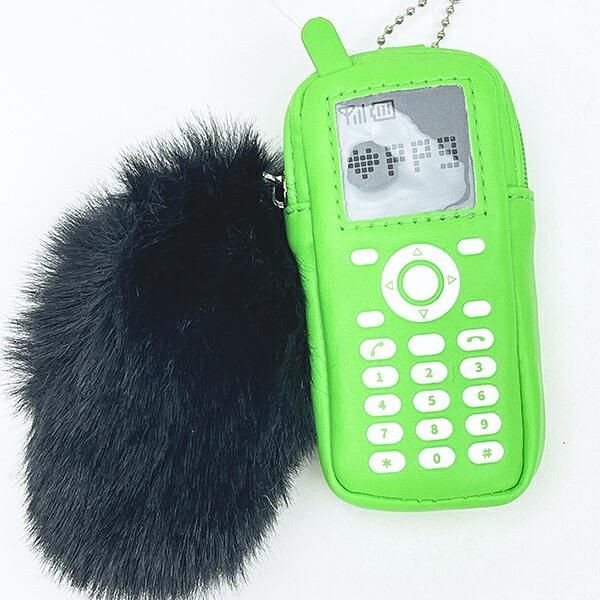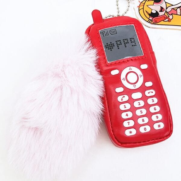 ポーチのデザインはプリントではなく、ぷっくりと立体感のある感じが特徴的。まるで本当のガラケーみたいで楽しい!ピンクのふわふわファーチャームがガーリーさをプラスして、筆者は女子高生時代を思い出してエモさ爆発しそうです。