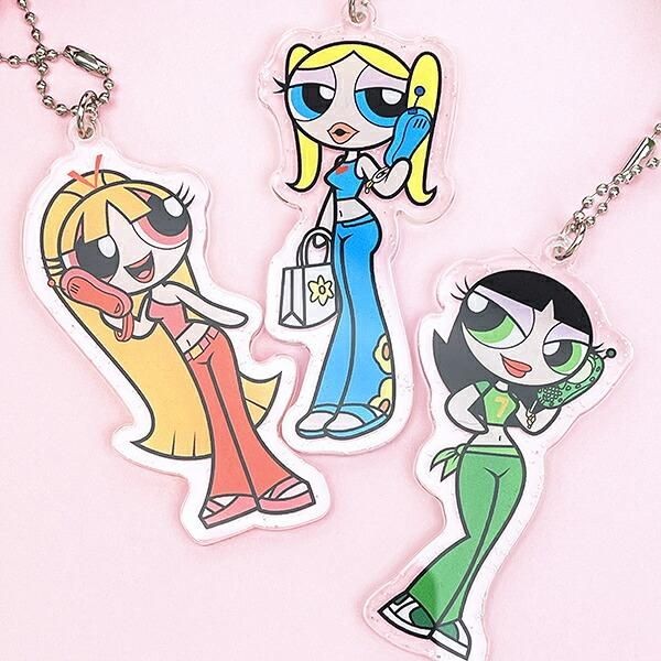 街の平和を守るキュートな3人娘『パワーパフガールズ』といえば、可愛らしい幼稚園児たちです。そんなキュートなガールズ達がもし大人になったら…そんな想像が具現化された、ちょっと珍しいアイテムを見つけました!今回ご紹介するのは、パワーパフガールズの **ケイタイモチーフポーチ** です。ガラケーのような懐かしさを感じる携帯型のポーチに、なんと平成ギャル風の姿になったガールズそれぞれのチャームがついた激かわなアイテム!ファンなら思わず二度見してしまうような最高のポーチにご注目下さい。