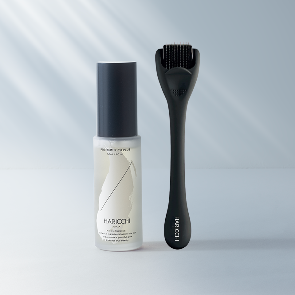 この鍼灸をベースに、美容目的で生み出されたのが「美容鍼灸(びようしんきゅう)」です。お肌が本来持つ、綺麗になろうとする力を目覚めさせます。鍼でお肌に刺激を与えると、鍼による傷を修復しようとして、お肌が目覚め、お肌本来の力で、ハリや弾力がアップします。このメカニズムに着目し、開発したのが、銀座ハリッチの「鍼灸サイエンス」スキンケアです。