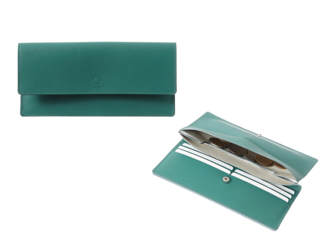 スナップボタンを開けるという行為だけでカード、コインはもちろん、紙幣を折らずに収納できる機能を持たせています。フラップ部分にコインを入れるというユニークなつくりは、コインの重みでフラップが閉めやすくなり、スムーズな動作を促します。