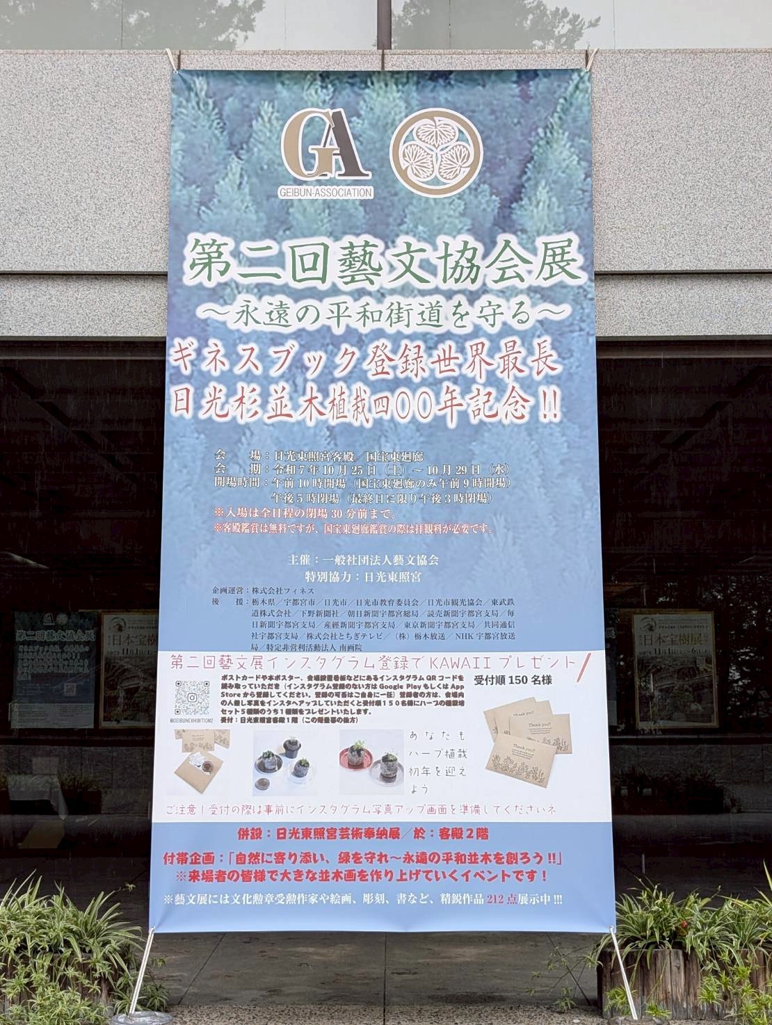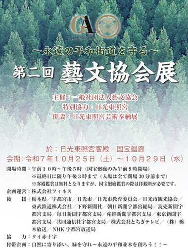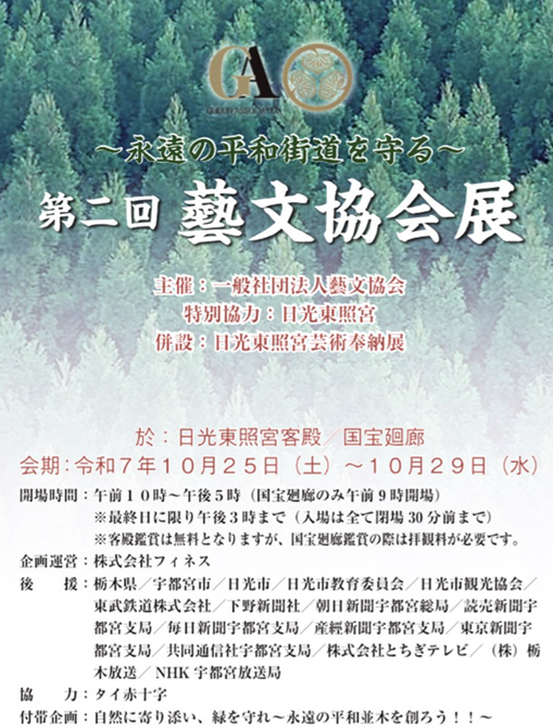 本展は、世界最長の日光杉並木植栽400年の節目に「永遠の平和街道を守る」というテーマに基づき日光東照宮特別協力のもとに開催されます。