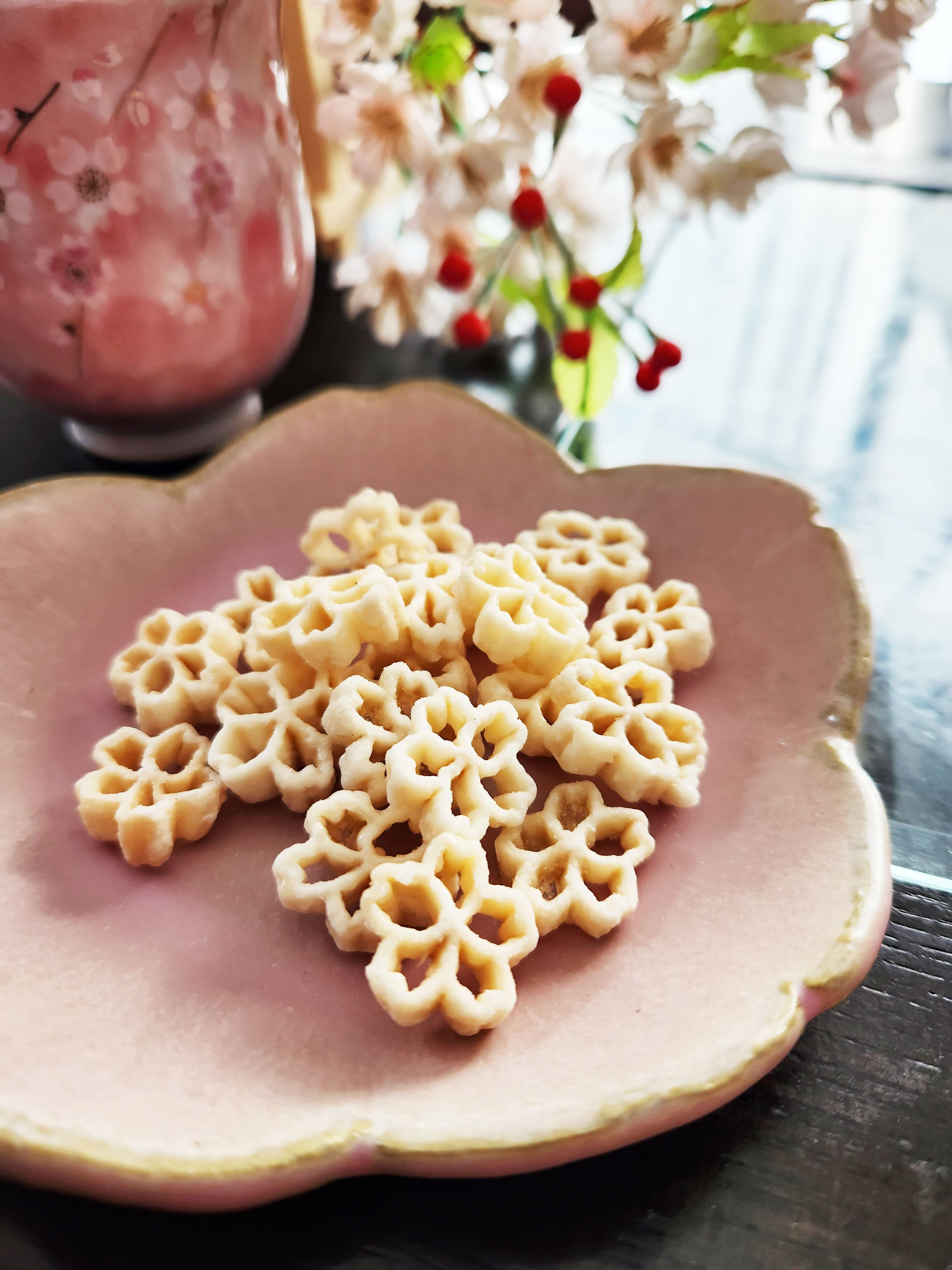山形県「有限会社 玉谷製麺所」の、「桜」を模ったパスタスナックです。小麦粉不使用で、山形県産米とでんぷんで作ったパスタを素揚げし、きび砂糖と天然塩で味付け。あられのように優しい味が、勉強の合間のリフレッシュに楽しめます。一滞在につきお一人様1袋をプレゼントいたします。