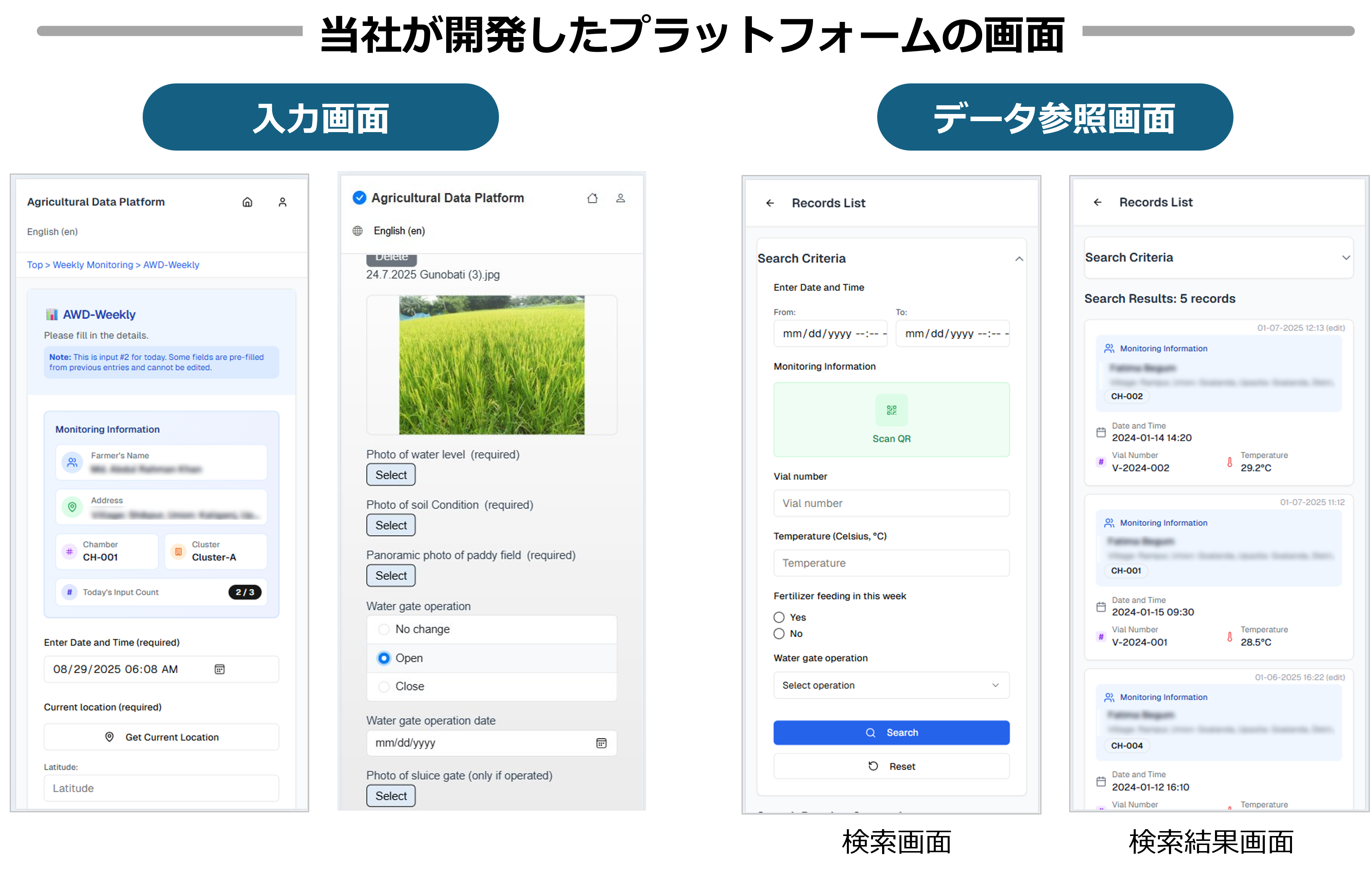農業データプラットフォームの運用を開始しており、AWD農法(※1)の普及により目標としていた生産性向上は20%以上、メタン排出量については目標30%の削減に対して平均30%以上の削減が見られ、農家の財政的支援に繋がることが確認され、政府機関や農家からの需要が高まっています。