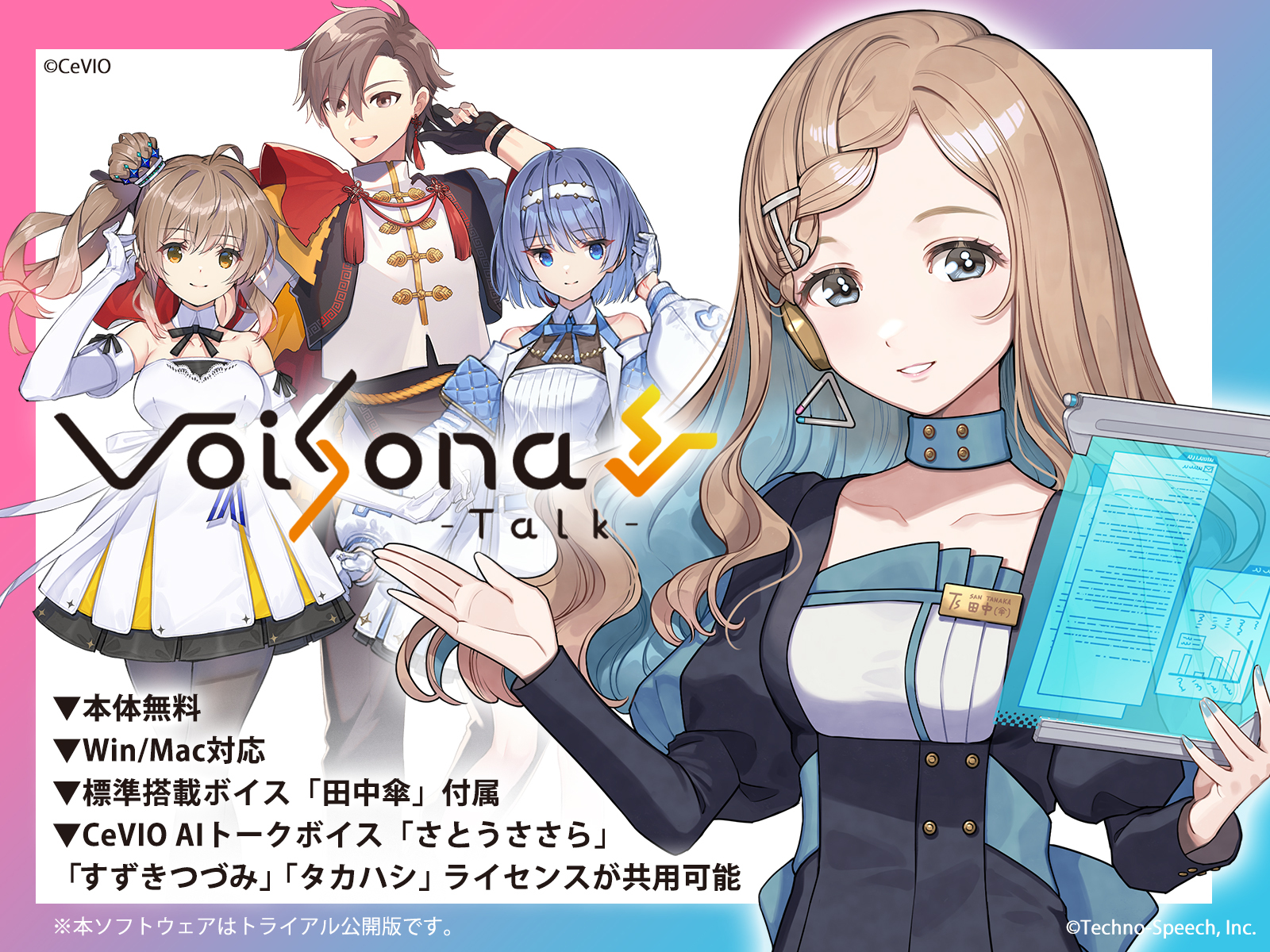 この度、「VoiSona」の正式版リリース1周年の記念プロジェクトとして、開発中のAI音声合成ソフト「VoiSona Talk」を無料でトライアル公開しました。Windows/macOS両対応です。