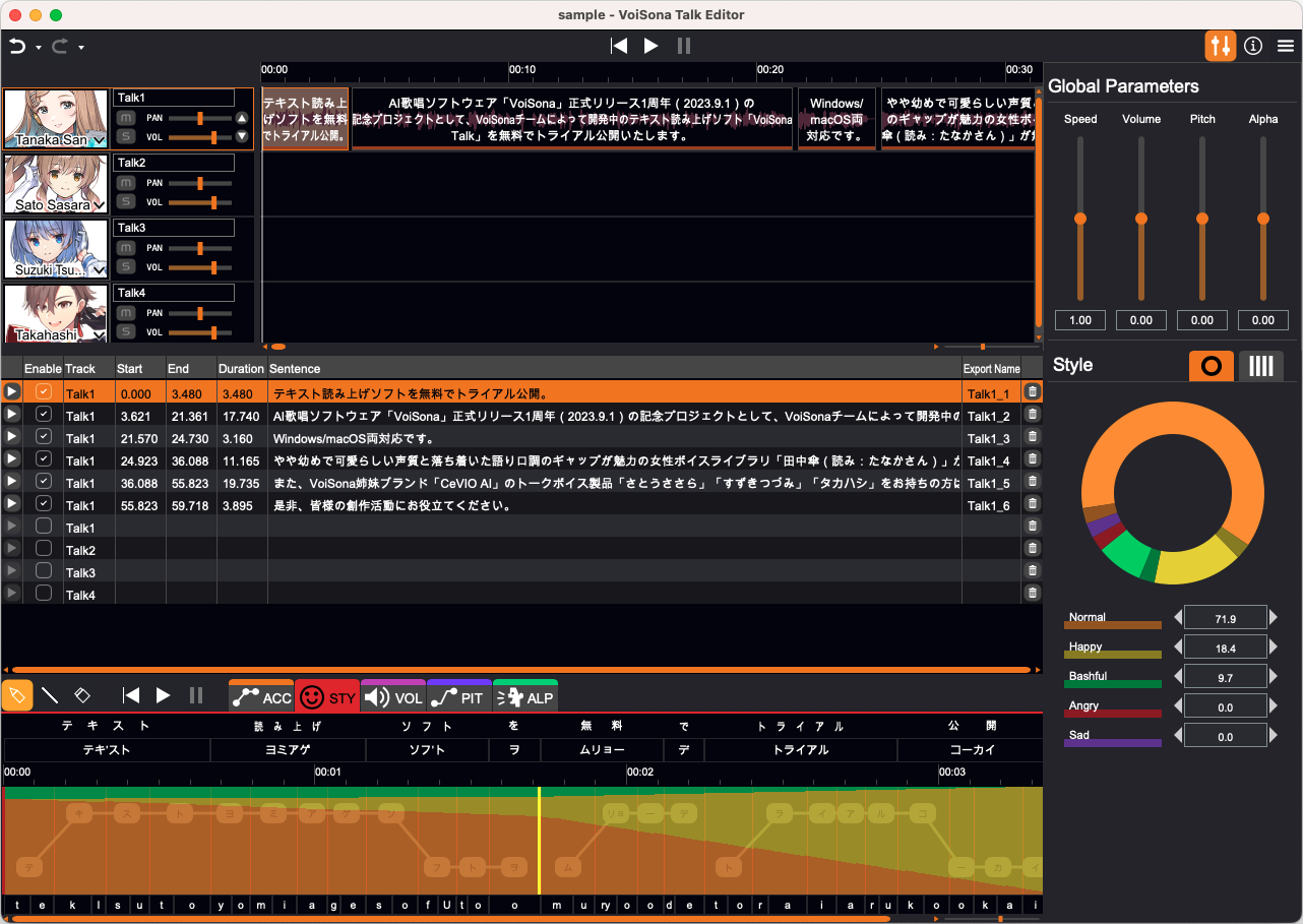 株式会社テクノスピーチ(所在地:名古屋市東区、代表取締役:大浦 圭一郎、以下 テクノスピーチ)は、開発中のAI音声合成ソフト「VoiSona Talk(読み:ボイソナトーク)」を2023年9月1日正午に無料でトライアル公開しました。