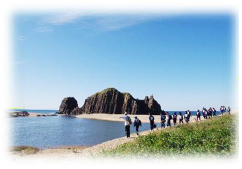 ・百寿ウォーキング(大成古墳~立岩)はガイドが同行し、高台から日本海を一望できる絶景スポットをウォーキングします。(歩行距離:約1キロ)