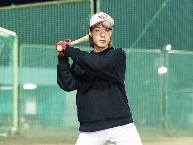 その一人が、女子学生コーチとして活躍する山内萌衣さん。高校時代に強豪女子野球部でプレーした経験を生かし、現在は部員たちの練習や試合をサポートしています。