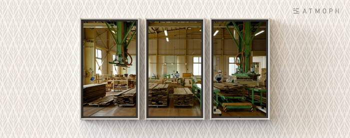 廃材になる「ワーミーメープル」で作られた窓枠で、Atmoph Window 2をドレスチェンジ